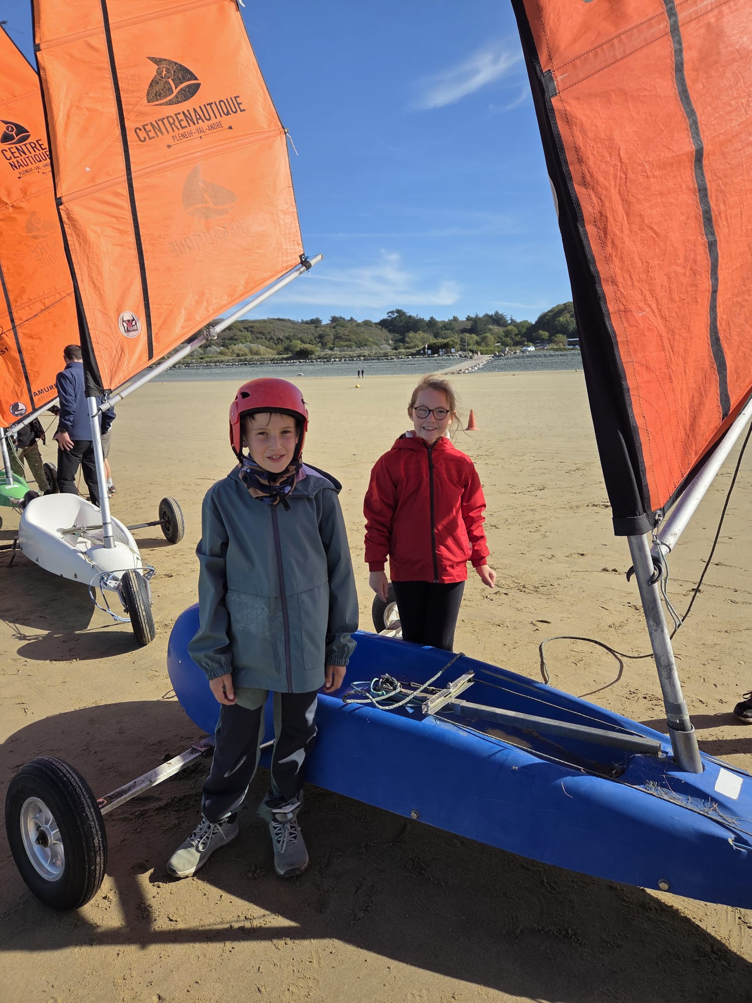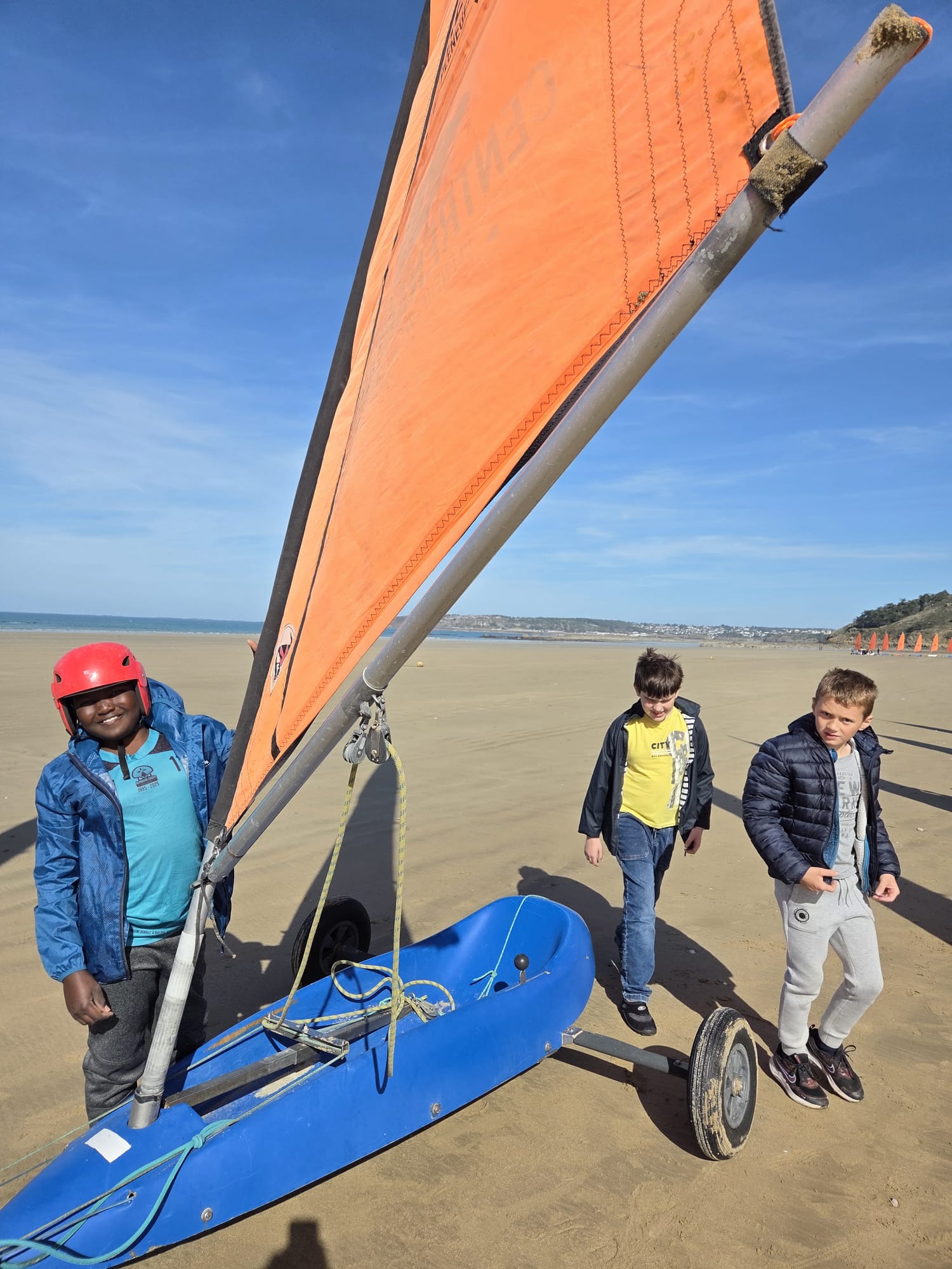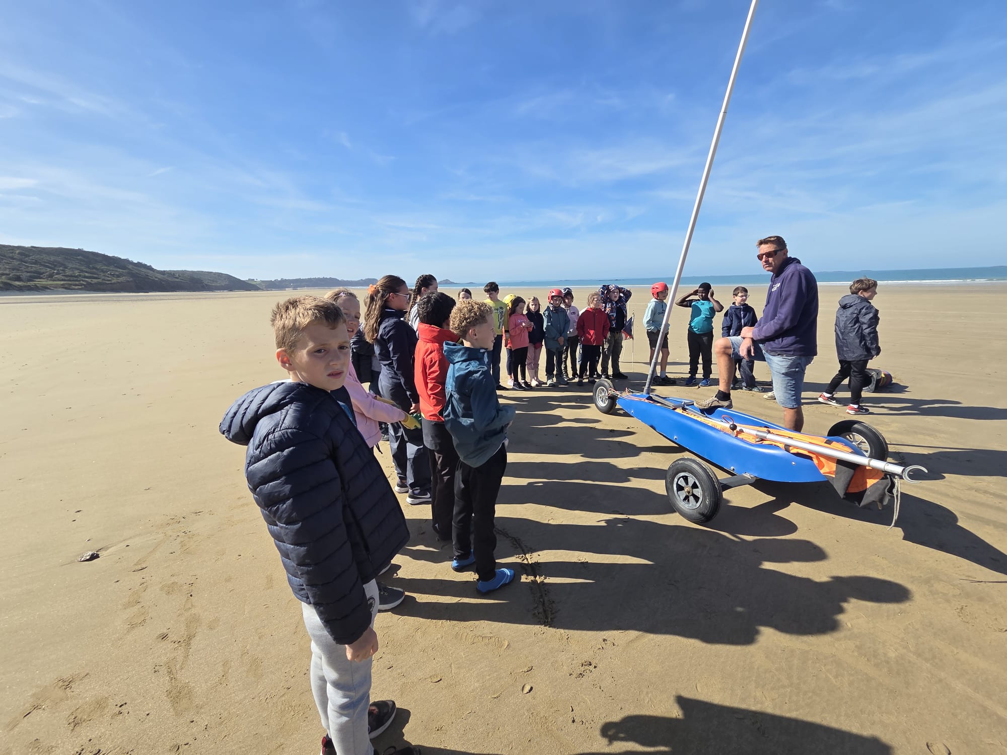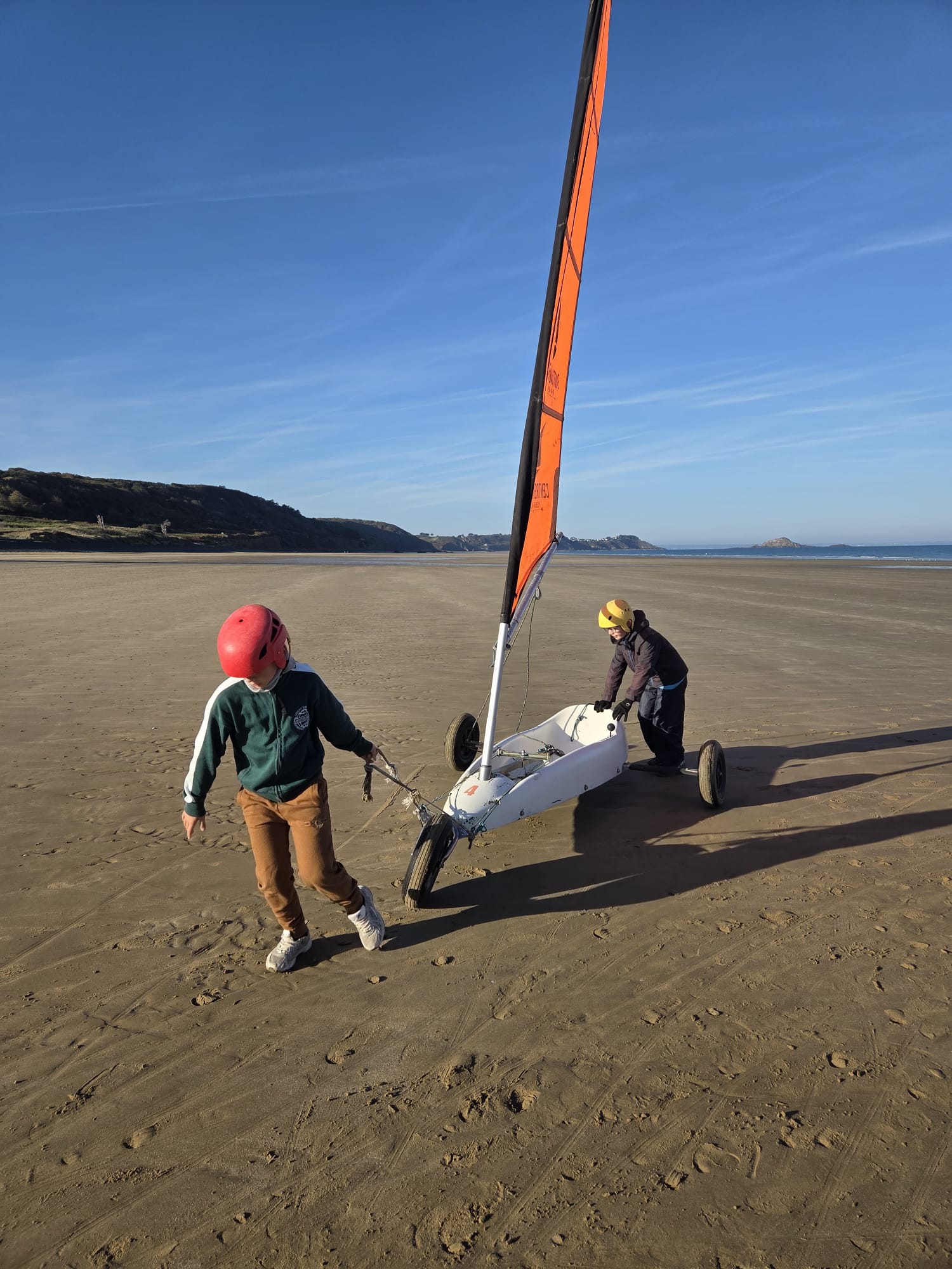 Séquence char à voile au premier trimestre pour les CM. La météo était agréable à la Ville Berneuf. Les élèves ont bien apprécié ces séances avec Alex et Vincent, moniteurs sympathiques du Centre Nautique de Pleneuf Val André.