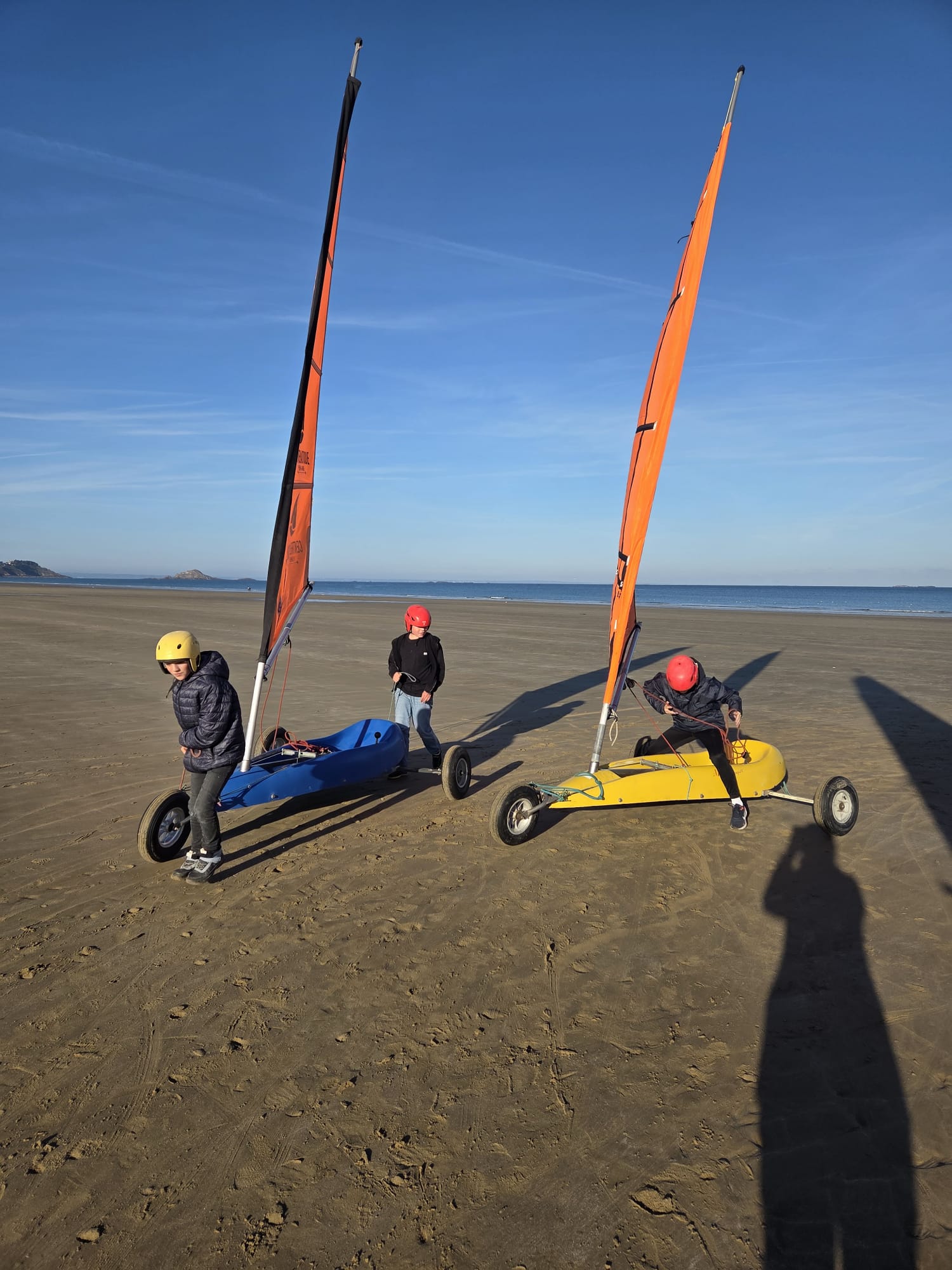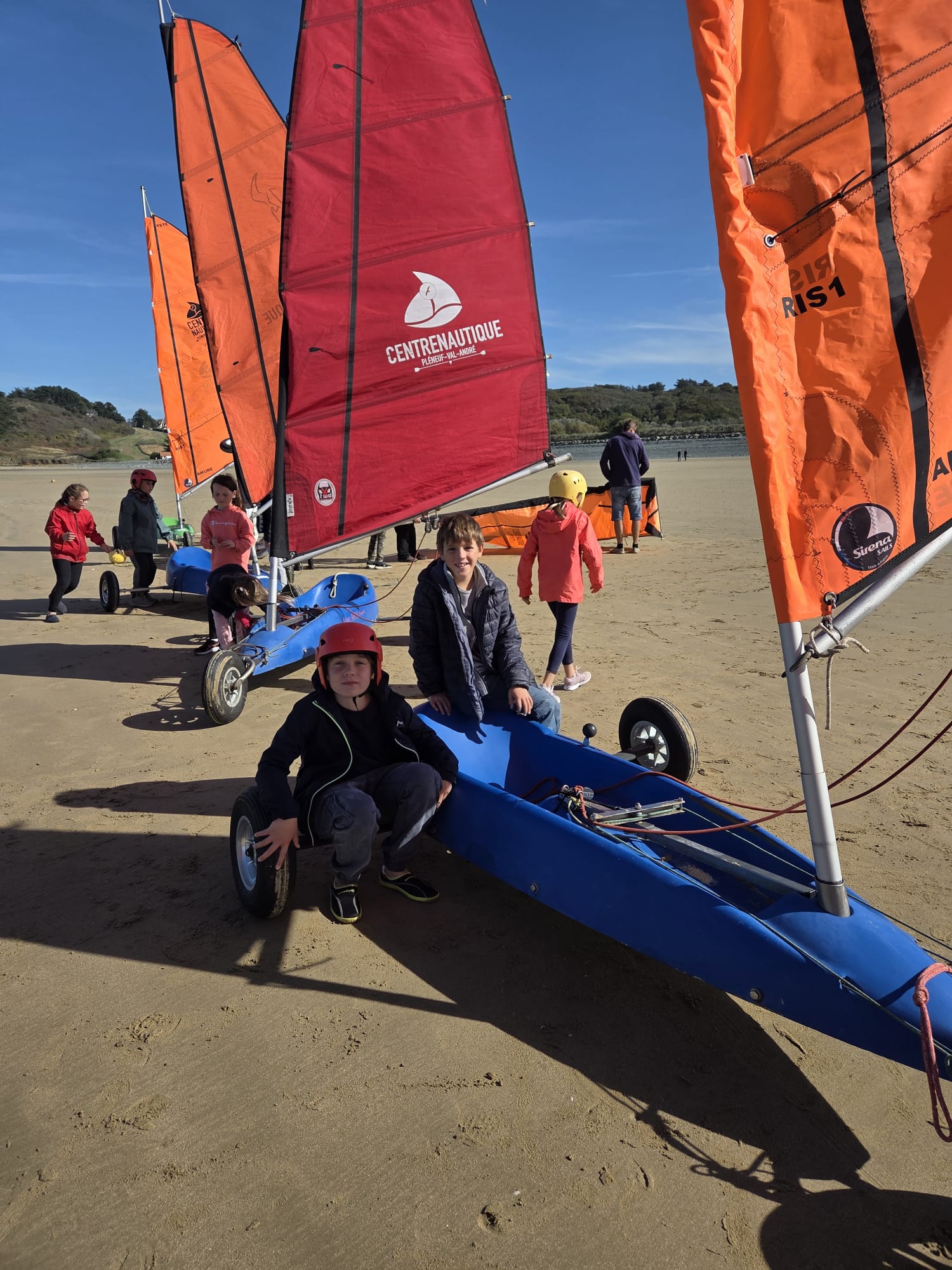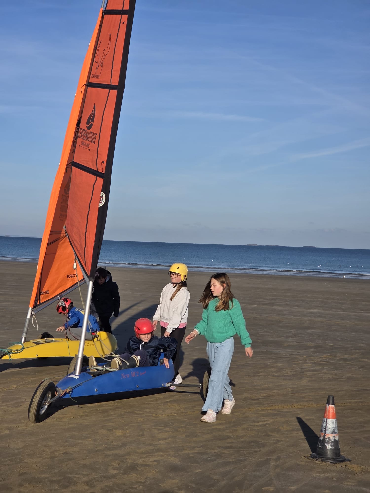 Séquence char à voile au premier trimestre pour les CM. La météo était agréable à la Ville Berneuf. Les élèves ont bien apprécié ces séances avec Alex et Vincent, moniteurs sympathiques du Centre Nautique de Pleneuf Val André.