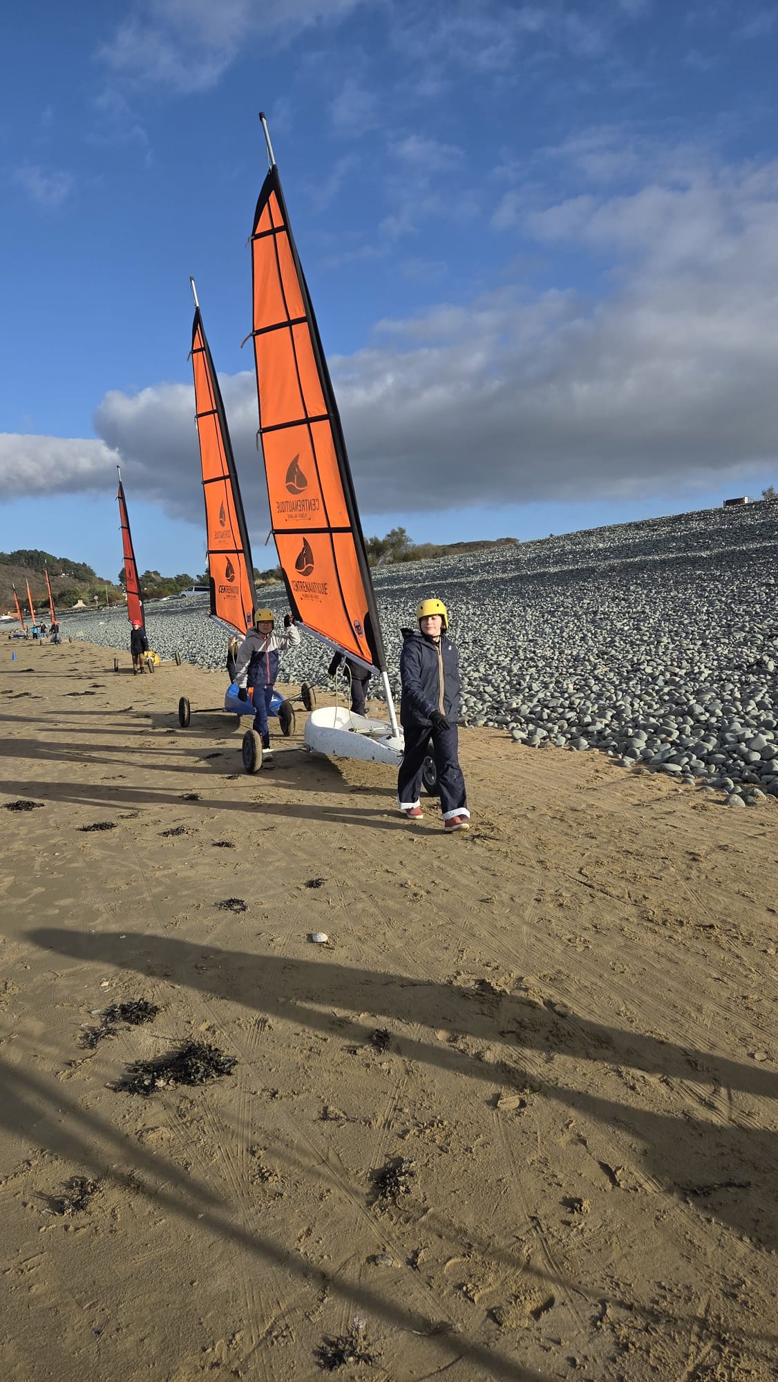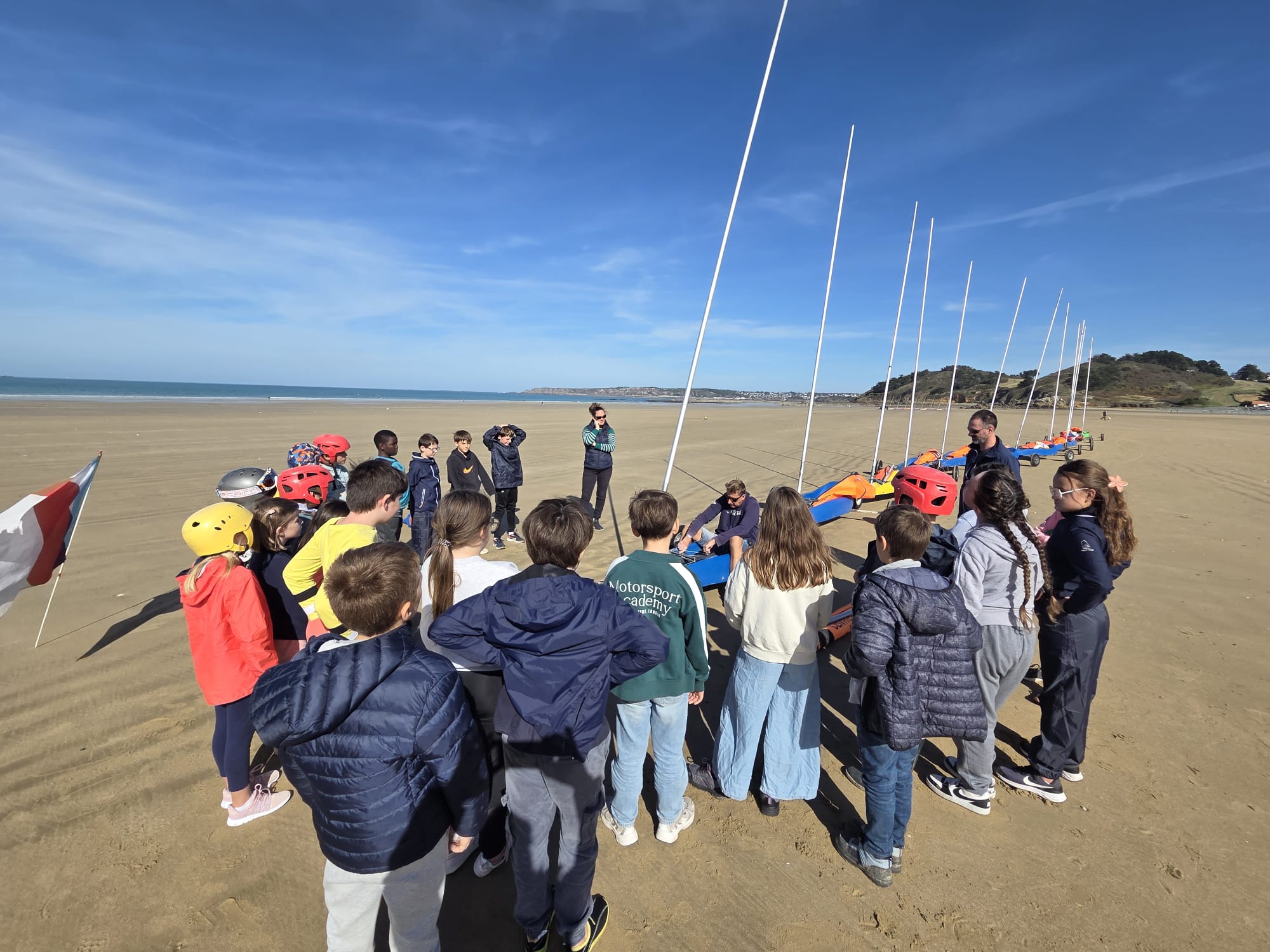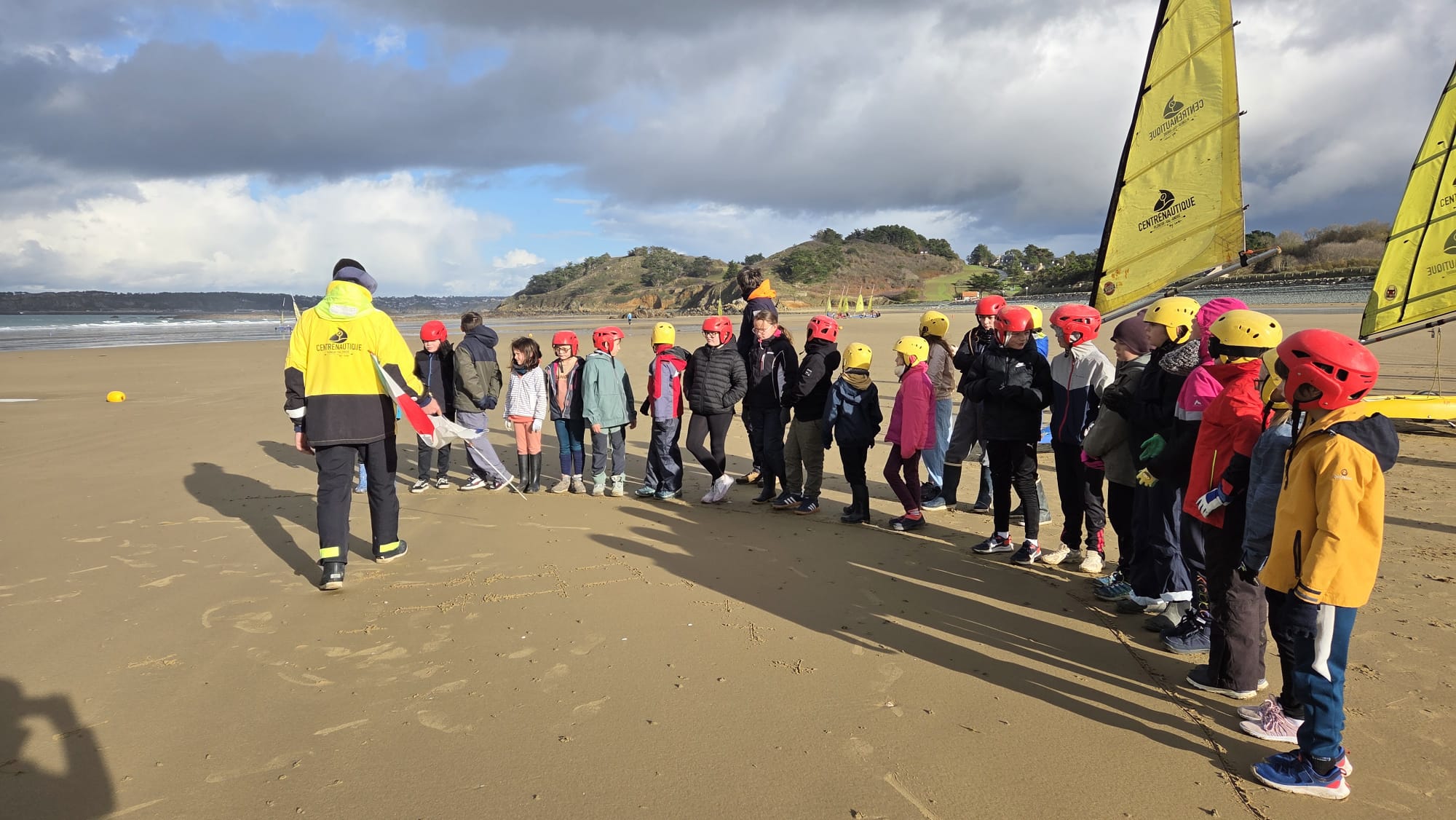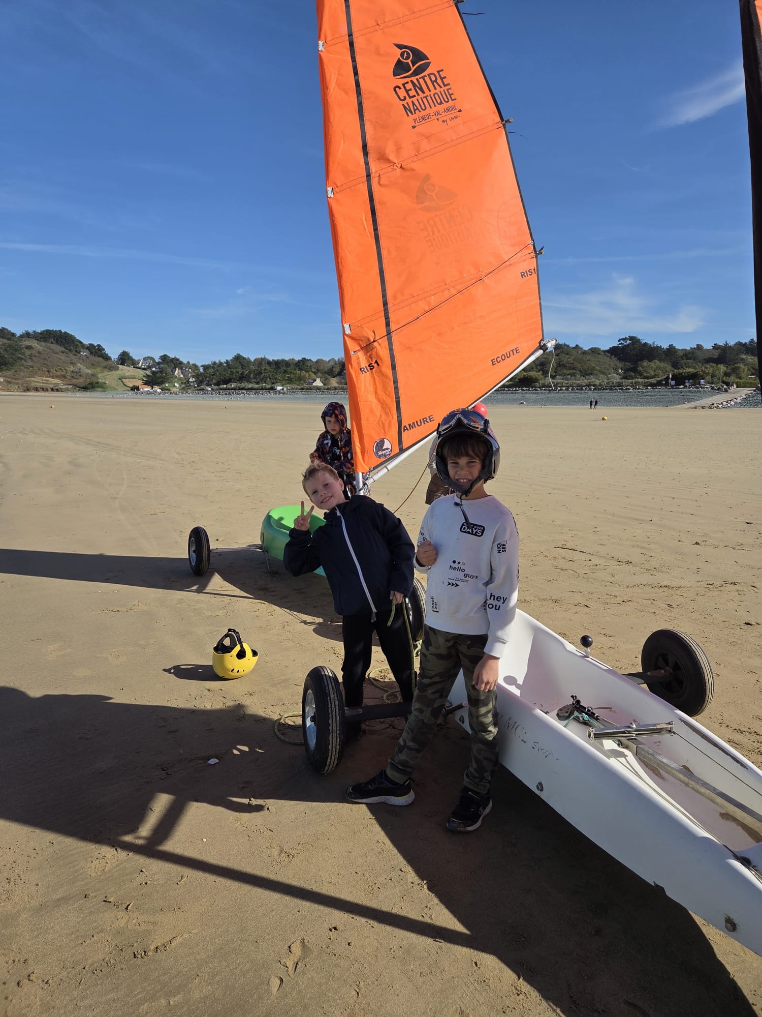 Séquence char à voile au premier trimestre pour les CM. La météo était agréable à la Ville Berneuf. Les élèves ont bien apprécié ces séances avec Alex et Vincent, moniteurs sympathiques du Centre Nautique de Pleneuf Val André.