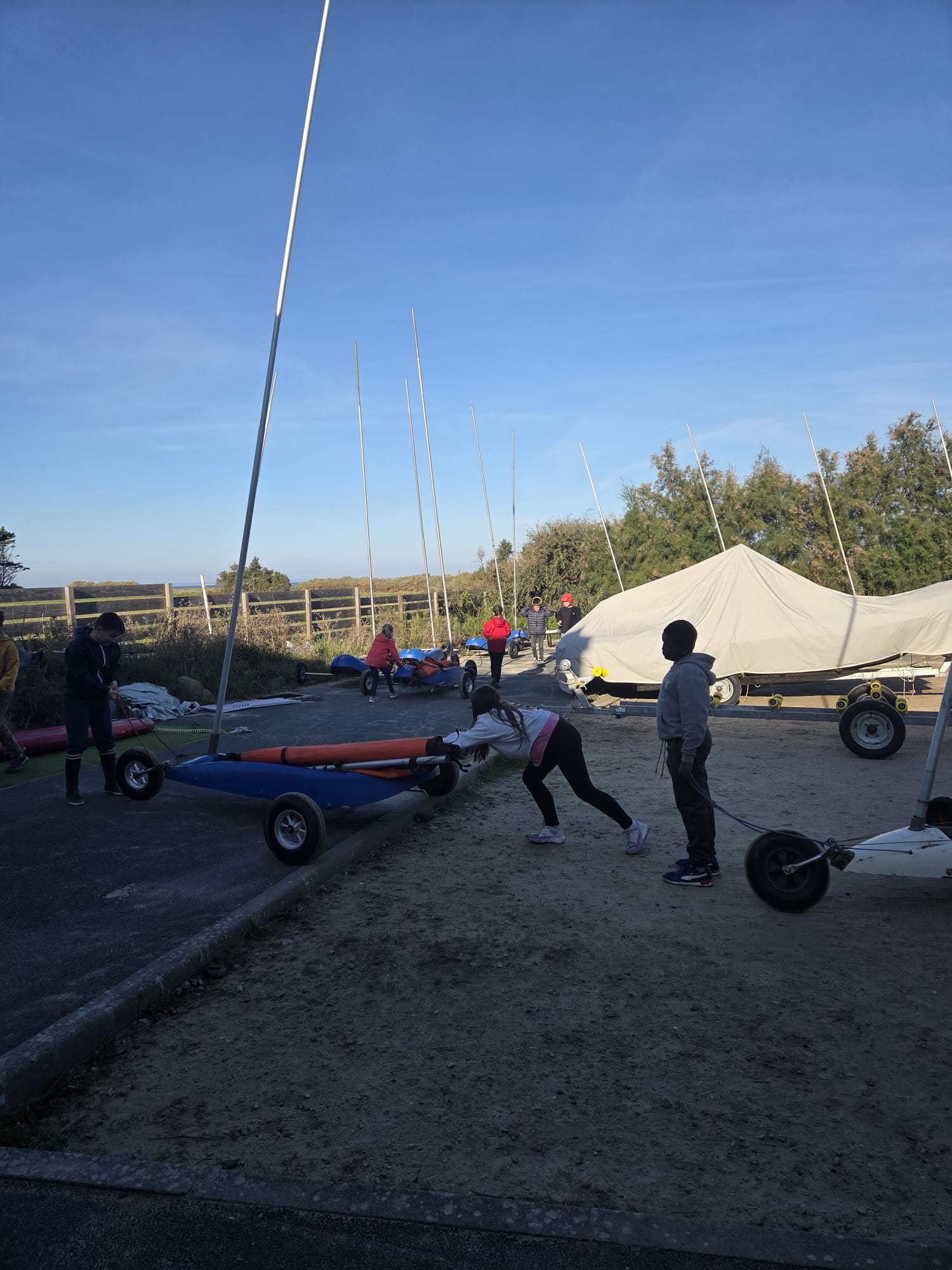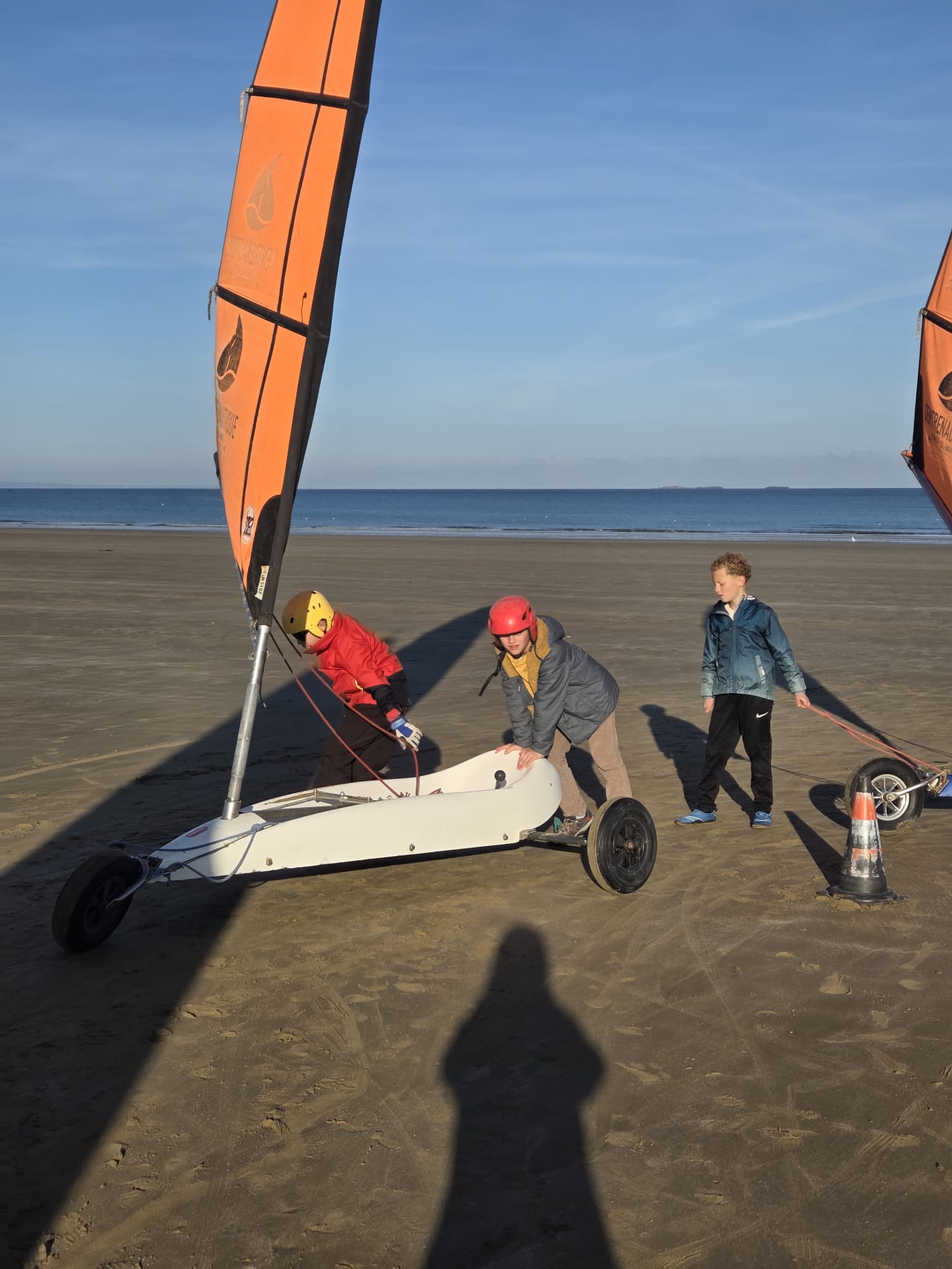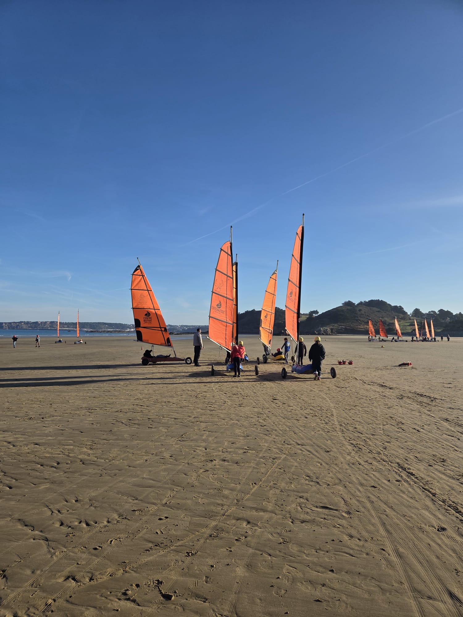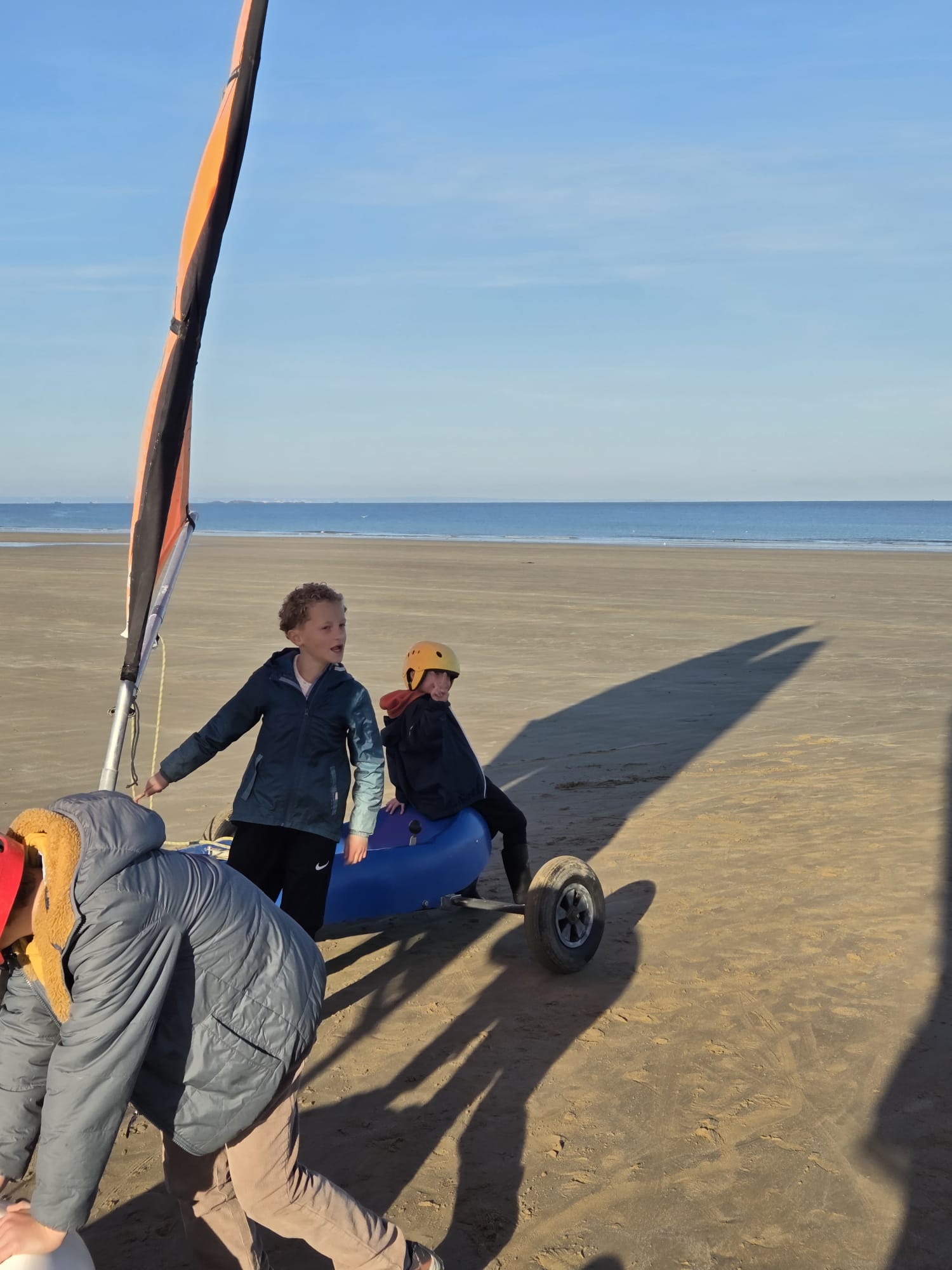 Séquence char à voile au premier trimestre pour les CM. La météo était agréable à la Ville Berneuf. Les élèves ont bien apprécié ces séances avec Alex et Vincent, moniteurs sympathiques du Centre Nautique de Pleneuf Val André.
